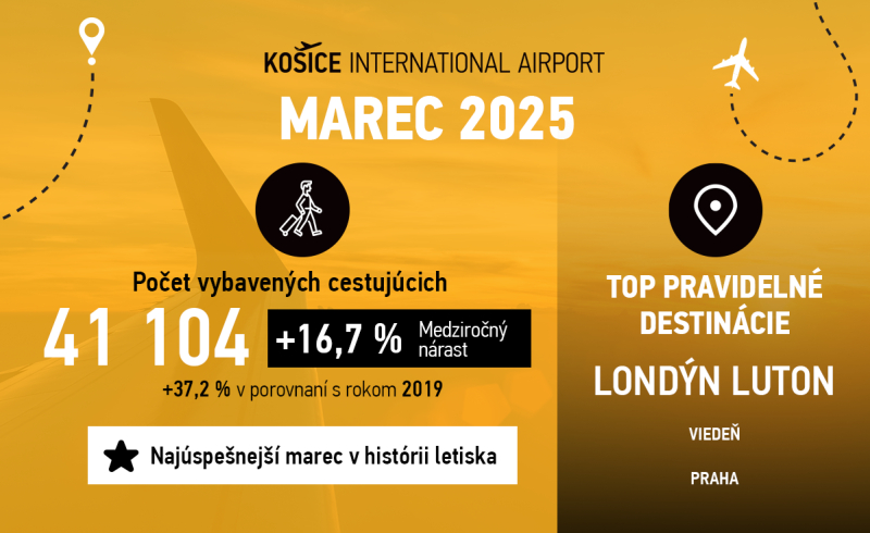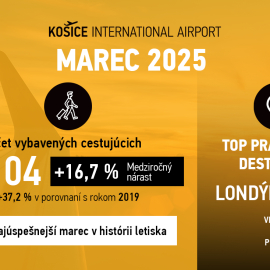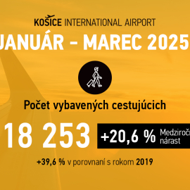 Po najúspešnejšom roku vo svojej histórii pokračuje Letisko Košice v prekonávaní rekordov aj v roku 2025. Za prvý štvrťrok prešlo jeho bránami 118 253 cestujúcich, čo predstavuje medziročný nárast o 20,6 %. Takisto tohtoročný marec bol najúspešnejším v histórii letiska s 41 104 vybavenými cestujúcimi. To je o 16,7 % viac ako v marci 2024.
